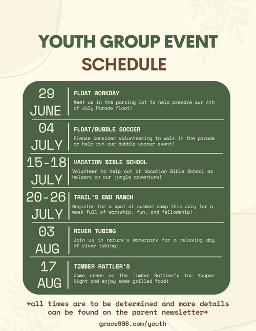 YOUTH SUMMER 2024 EVENT SCHEDULE